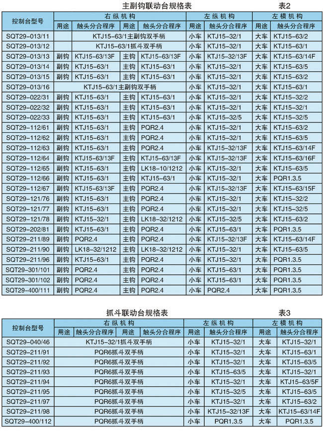 吊鉤(主鉤)聯動臺規(guī)格表 表1