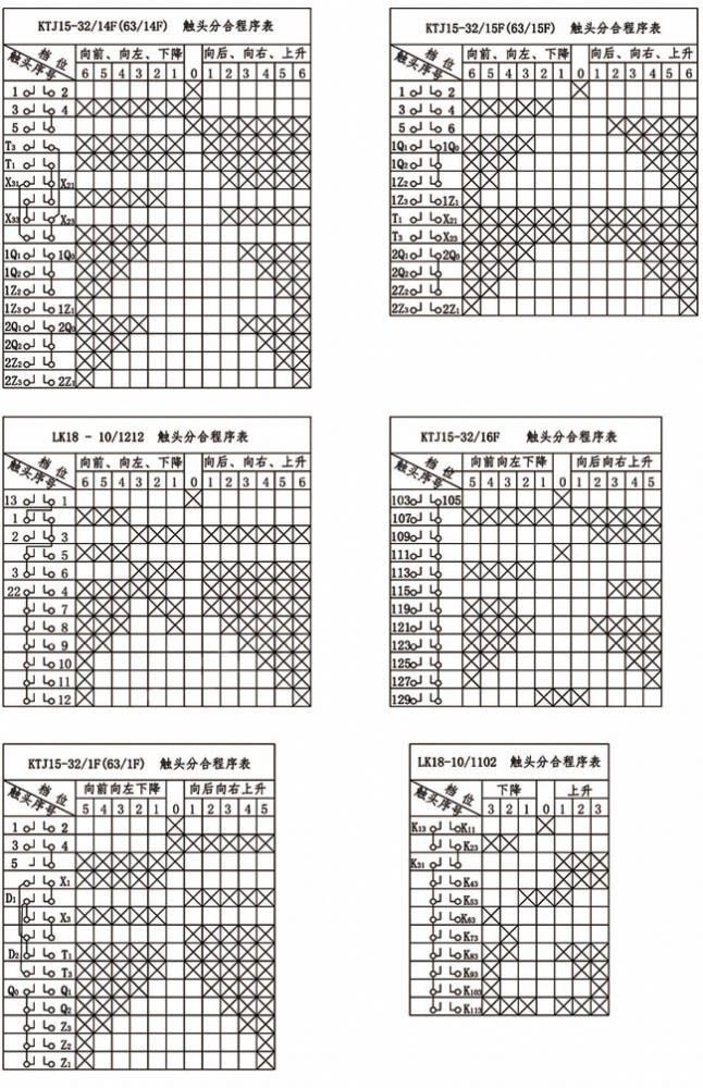 6.2 按照電器原理圖的要求,分別逐檔操作聯動臺,觀察觸頭的分合是否與觸頭分合程序表相符,如有不符,應調整或更換凸輪片。