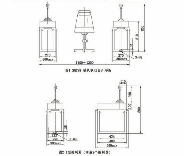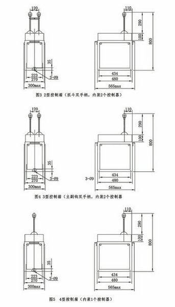 聯動臺和各型控制箱的外形及安裝尺寸分別見圖1 ~ 圖5