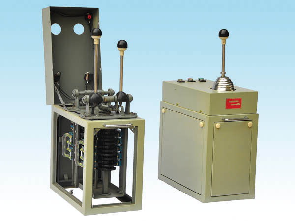 聯動臺是由左、右控制箱,座椅和腳踏開關組成,左箱操縱機構采用傳統(tǒng)的鑄鐵支座機構,右箱為創(chuàng)新結構。聯動臺的三部分各自獨立,可按需要位置在底板上安裝。控制箱分為操作傳動機構、專用控制器和箱體三部分。