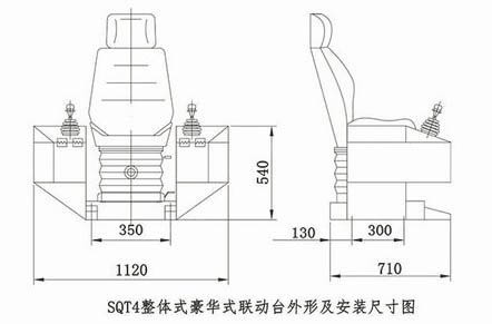 本聯動臺為整體安裝,是專為港口起重機設計的一種豪華型聯動臺,箱體采用金屬材料成型,造型美觀。座椅具有高度、前后、靠背角度等功能,可滿足不同身材的駕駛員舒適操作。箱體內配有SLK5型或SLK3型主令控制器,操作舒適,手感明顯,檔位清晰,操作機構設有零位自復和自鎖裝置。SLK5型觸點采用橋式雙斷點直動式,安全可靠,使用壽命長,接線、安裝和維修都非常方便。箱體蓋上可安裝各種指示燈和按鈕,并能方便加裝觸摸屏等。