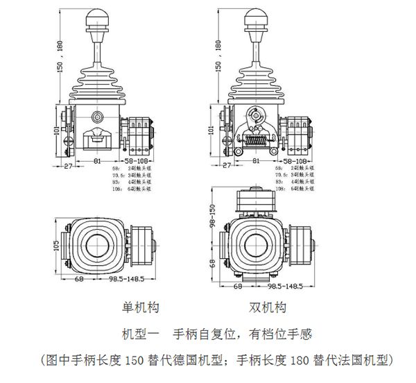 機型一,手柄自復位、有檔位手感,輸出開關量信號;