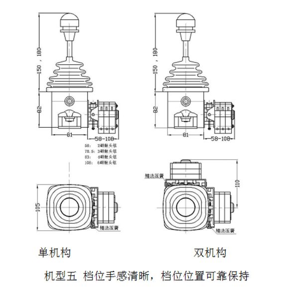 3、手柄操作力:手柄自復位型11N,檔位順滑省力;檔位可靠保持機型10N。均符合人體工學。