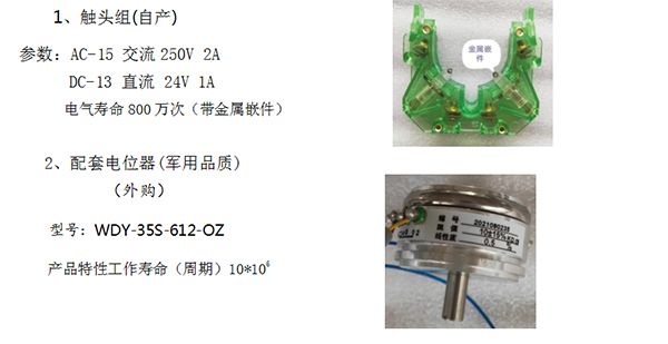 2).觸頭組: 配套電器觸頭組原型為德國杰斯曼V6多軸控制器上的觸頭組,經本公司升級改造后,由原易損件升級為正常零部件。電氣壽命超高,達到與操縱桿整機同壽命。臺架帶電負載試驗到1000萬次,觸頭組仍能正常工作。本觸頭組用于高配款機型。