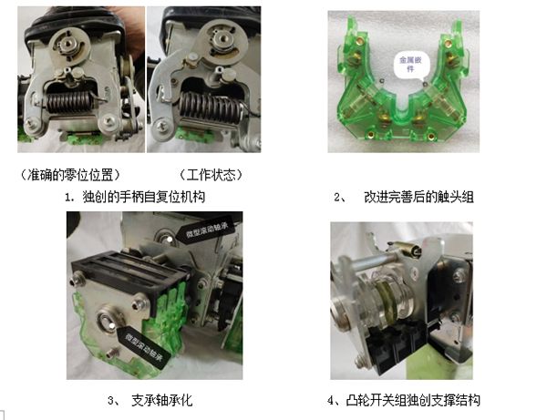 3、獨創的手柄自復位機構,零位永不飄移,解決主令自復位機構壽命短板的世界難題。