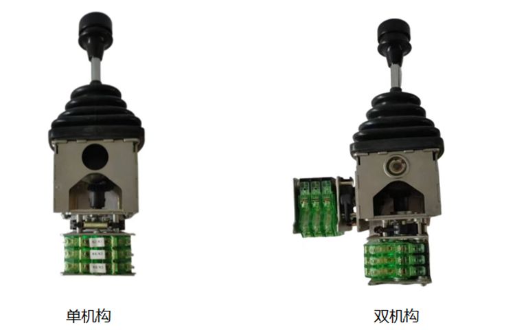 主令手柄有兩種功能形式,一種手柄自復位功能,如QT6S配置的是<SJ>P-XKDF主令控制器;另一種是有檔位手感、檔位保持型,如QT6S聯動臺配置的QT18主令控制器。
