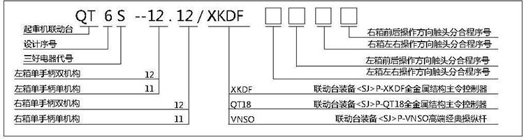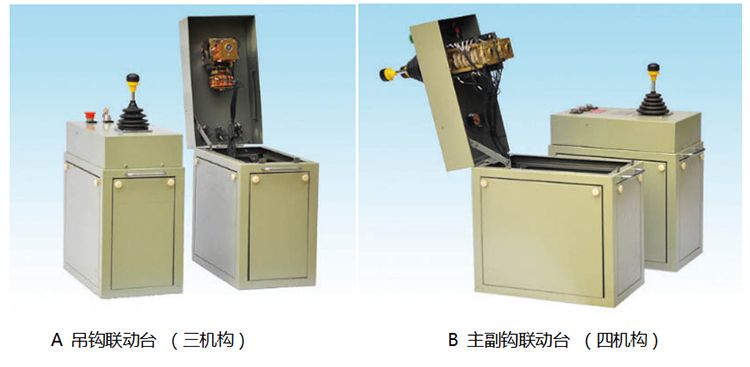 QT6S型聯動臺由左右箱組成。聯動臺按功能分為A吊鉤(三機鉤);B主副鉤(四機構);C抓斗(四機構)D主副鉤+付小車(五機構);共四種類型。