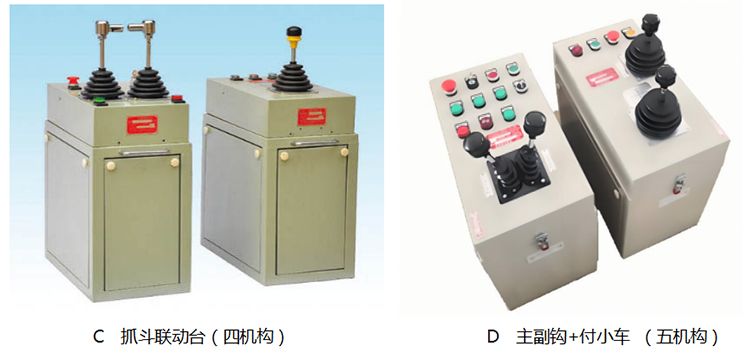 五機構是左箱單手柄、雙機構控制大車、小車,右箱單手柄雙機構控制主副鉤和單手柄、單機構控制特殊小車。